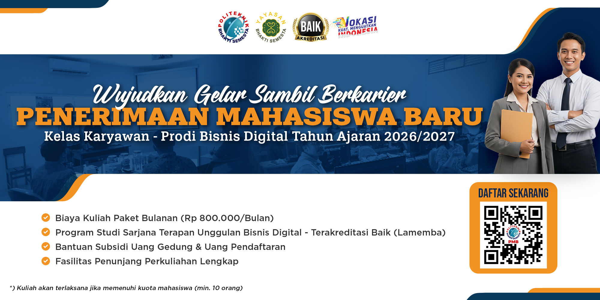 Cukup dengan membayar biaya kuliah sebesar Rp 660.000 per bulan, kamu sudah bisa menjadi mahasiswa di Politeknik Bhakti Semesta.